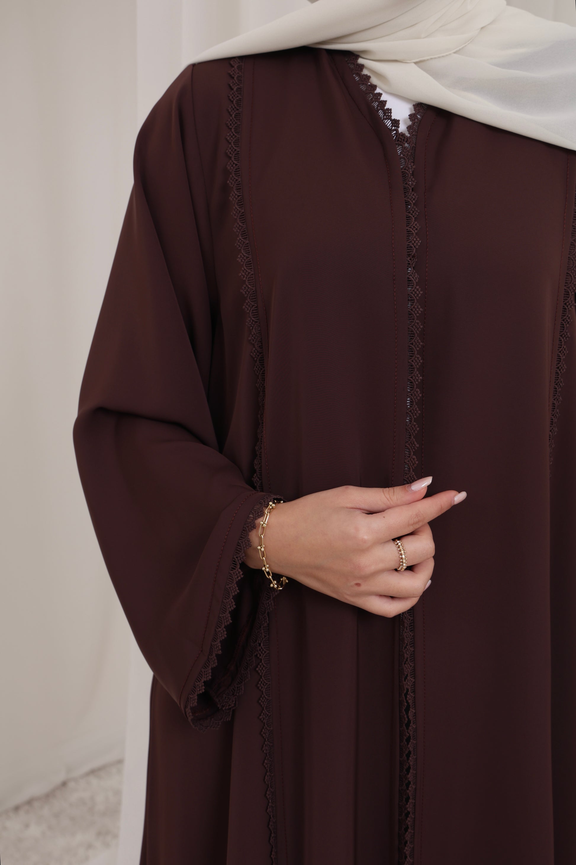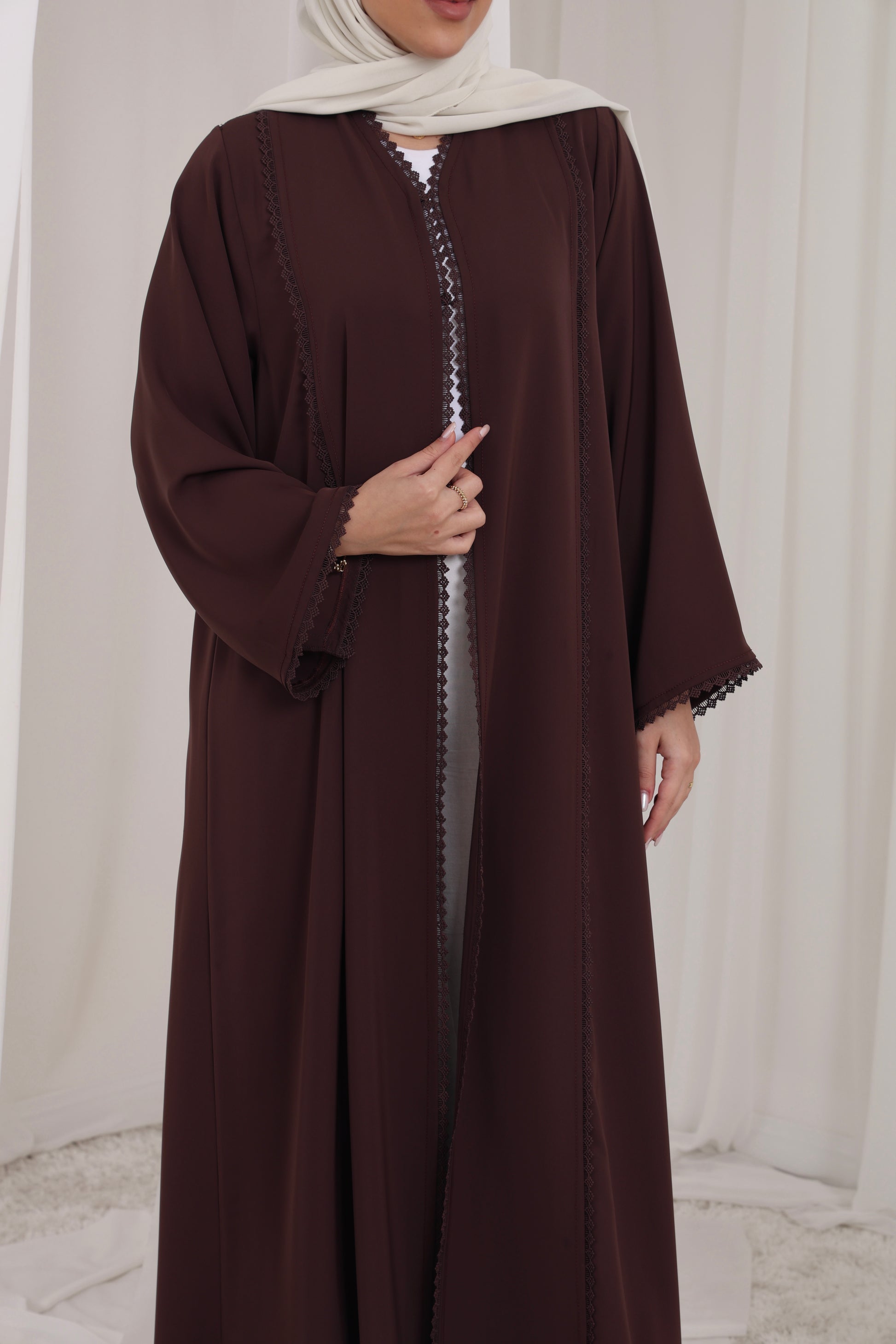 Elegante smaragdgrüne Abaya mit feinen Glitzersteinen am Saum. Leichtes, blickdichtes Material. Inklusive passendem Kopftuch. Ideal für festliche Anlässe.