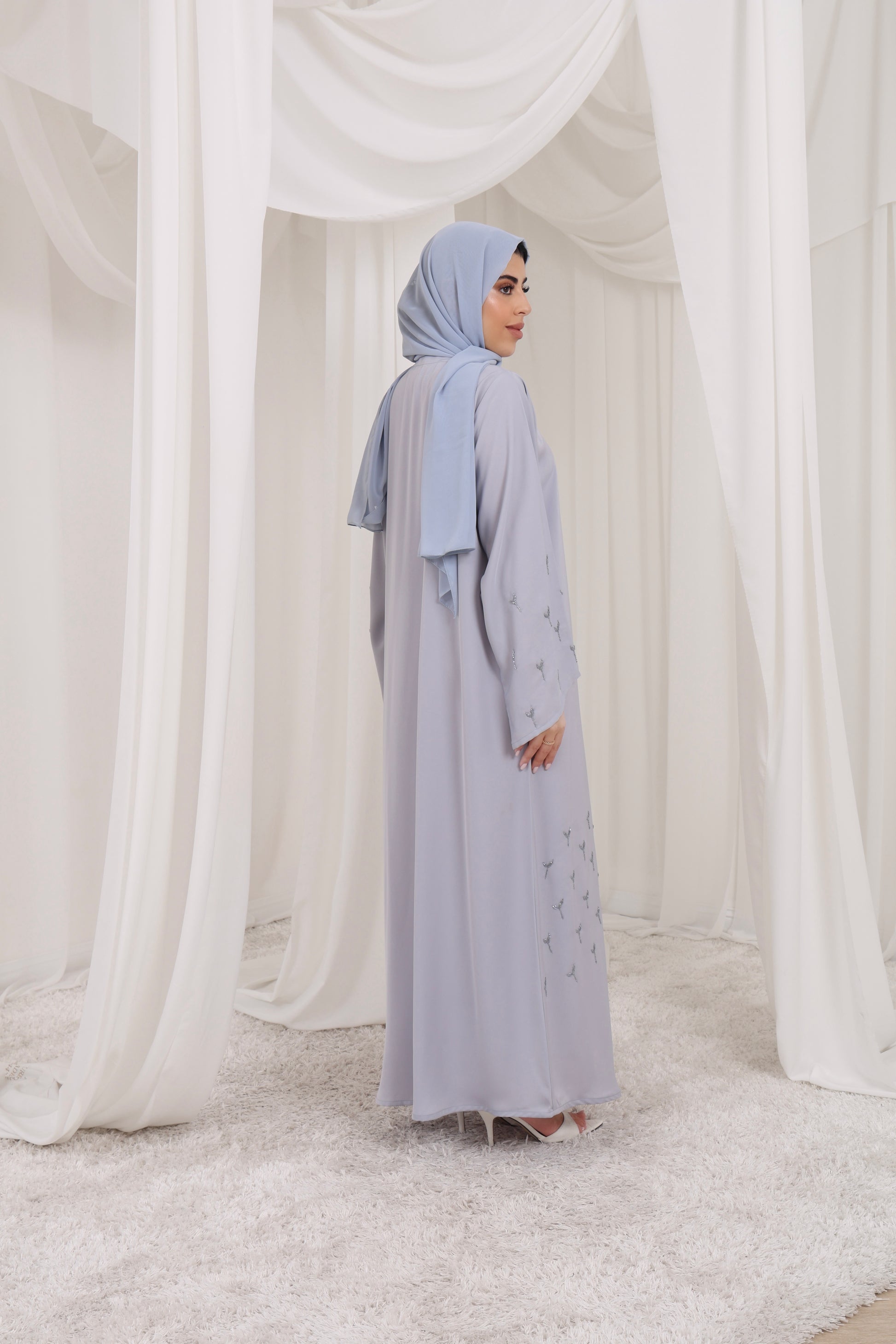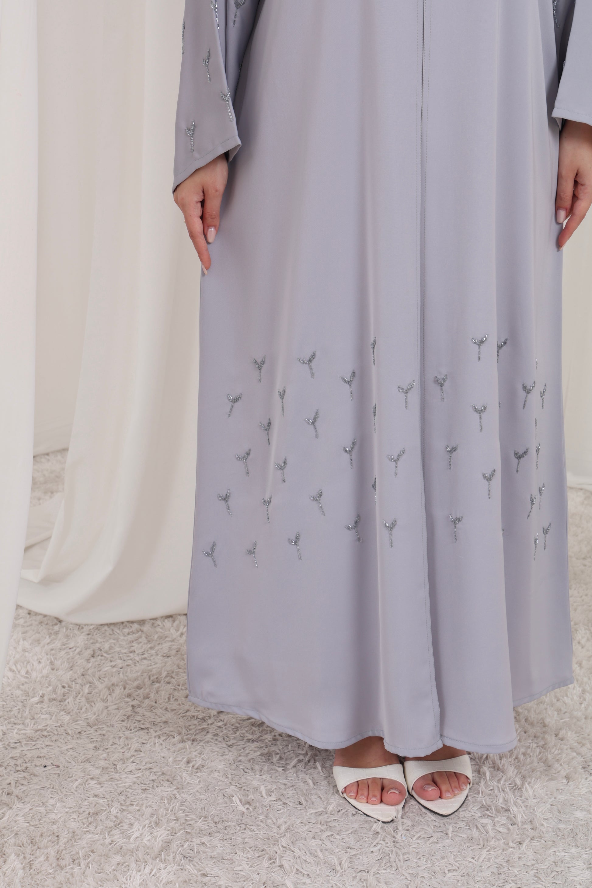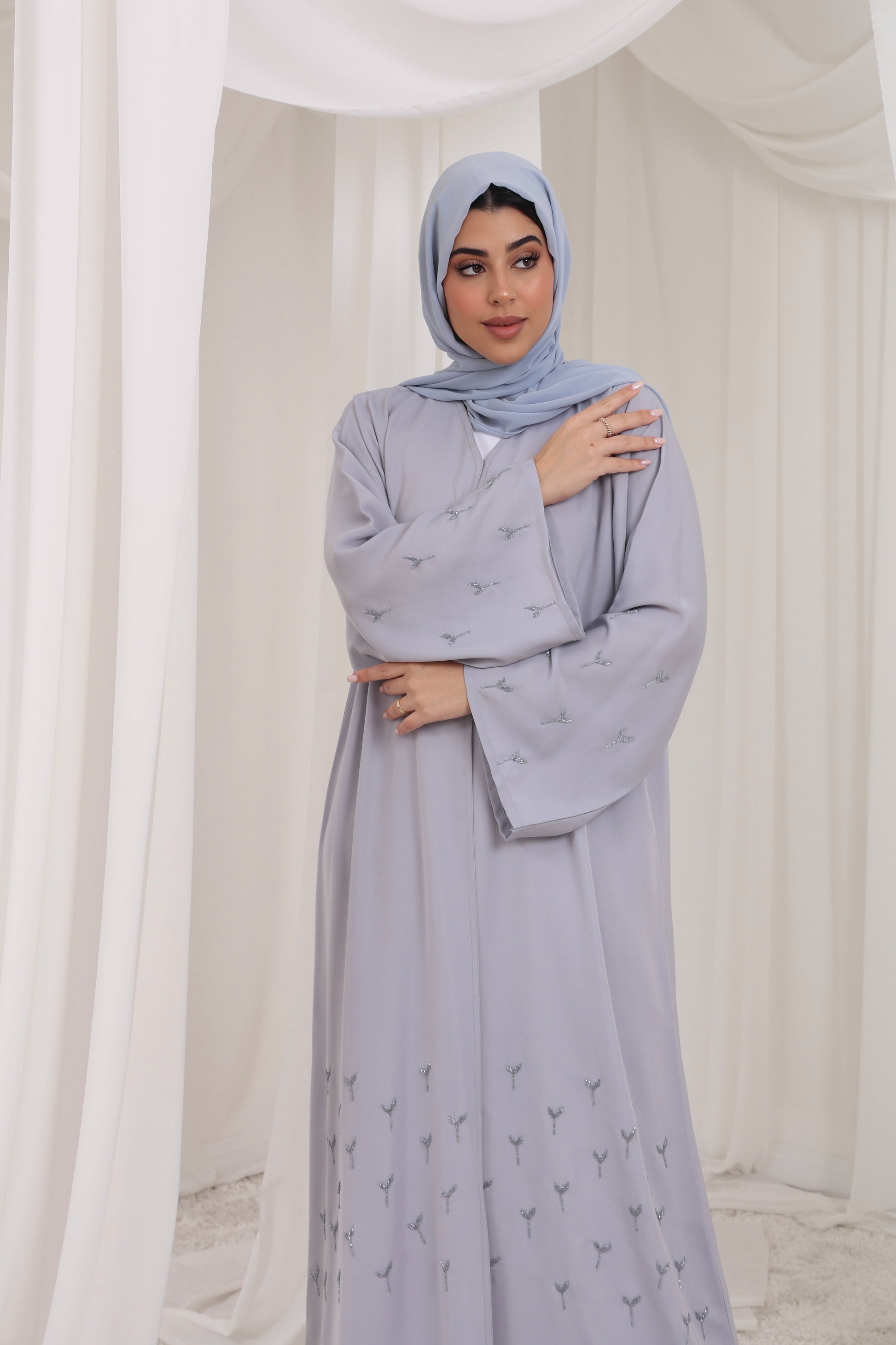 Elegante smaragdgrüne Abaya mit feinen Glitzersteinen am Saum. Leichtes, blickdichtes Material. Inklusive passendem Kopftuch. Ideal für festliche Anlässe.