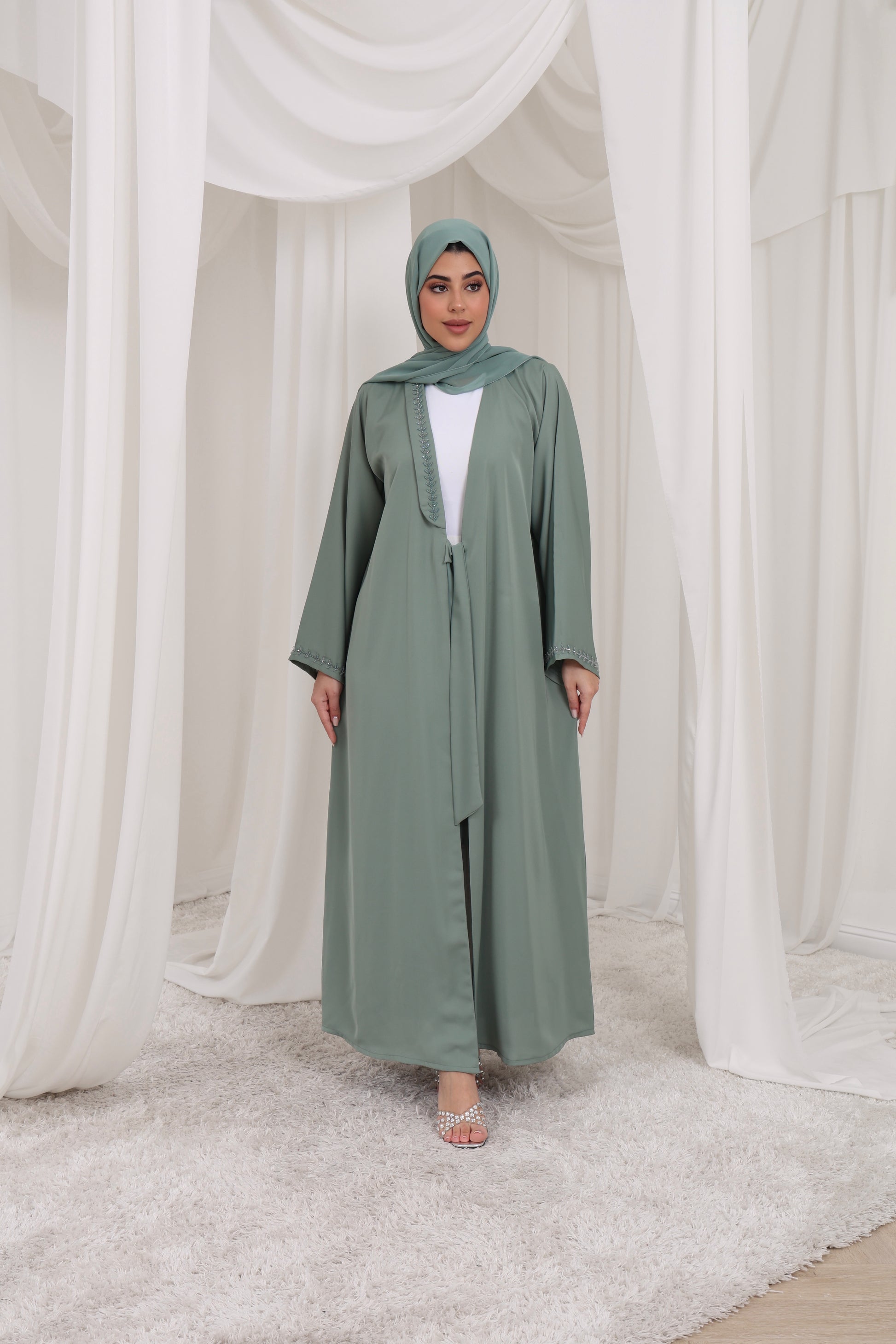 Elegante Abaya aus blickdichtem, fliessendem Material. Inklusive passendem Kopftuch ideal für festliche Anlässe oder den Alltag.